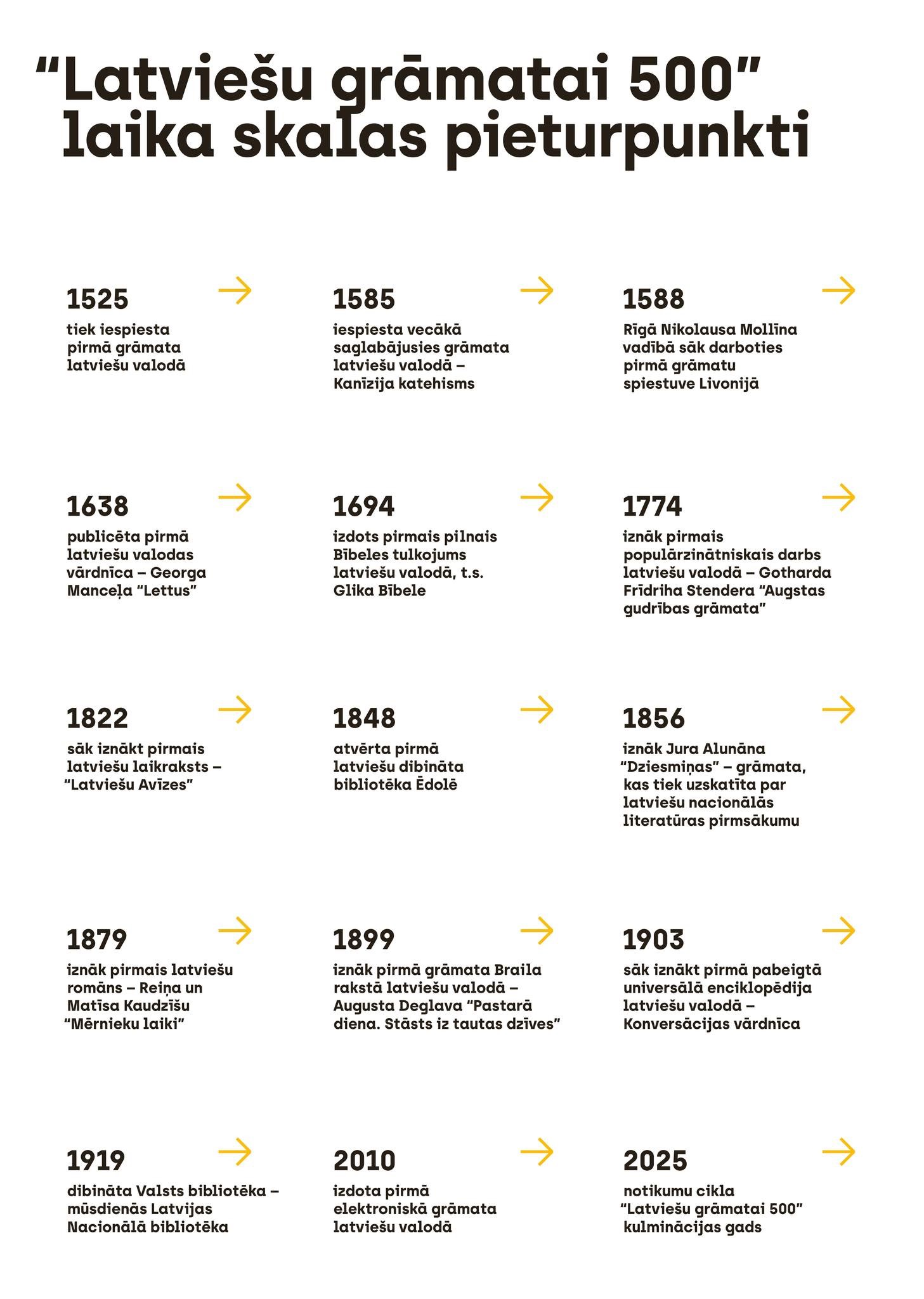 Šogad 8. novembris kalendārā atzīmēts kā kultūrvēsturiski nozīmīgs datums – 500. jubileja kopš pirmās latviešu valodā izdotās grāmatas. Godinot nozīmīgo kultūras notikumu, 8. novembrī gaidāms kulminācijas pasākums “Cauri tumsai ar grāmatu” Latvijas Nacionālajā bibliotēkā. Plašāk par pasākumu programmu var uzzināt vietnē gramatai500.lv.